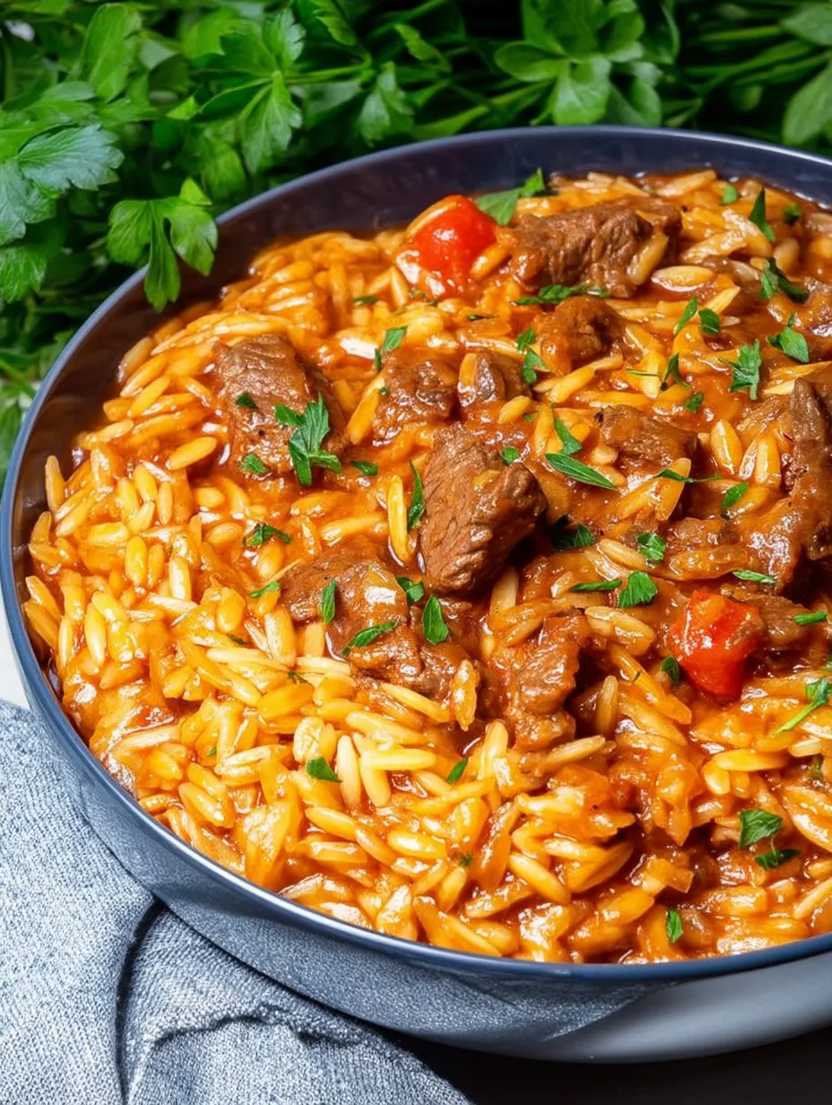 Every time I whip up this classic Greek giouvetsi, my kitchen fills with the wonderful smell of beef simmering slowly with spices and tomatoes. This cozy one-pot meal pairs melt-in-your-mouth beef with orzo that drinks up all the tasty sauce flavors. I stumbled upon this dish years back while visiting Greece, when a sweet old grandma at a tiny local eatery gave me her family's way of making it after watching me enjoy every bite.