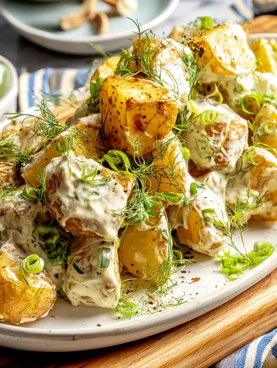 This potato salad turns the classic dish on its head by turning ordinary boiled spuds into golden, crunchy-edged pieces that stay soft inside. Unlike old-school potato salad with its sometimes soggy texture, this take creates an amazing mix between the browned, well-seasoned outside of each potato chunk and the smooth, herb-filled dressing. Roasting brings out the potatoes' natural sweetness while making those crunchy bits that add surprising texture in every bite. With fresh herbs, zingy Dijon, and the gentle kick of scallions, this fancy potato salad gives you all the comfort of the original with a special touch that'll have everyone wondering what your trick is.